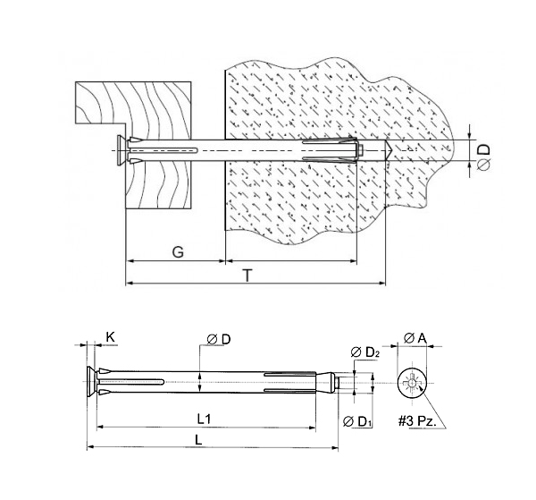 Материалом изготовления дюбеля является сплав цинка и алюминия.