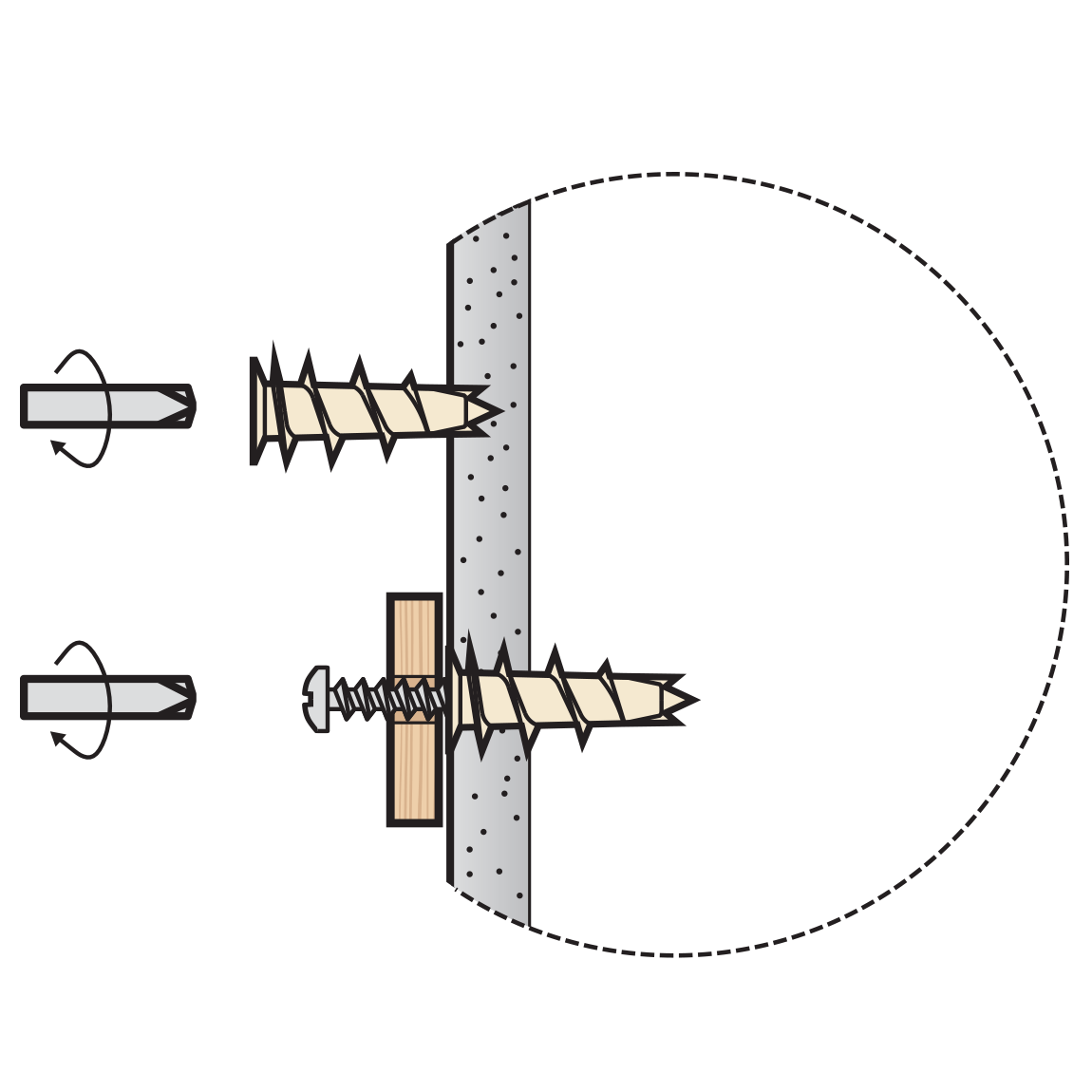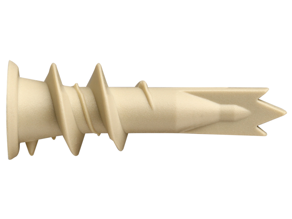 Дюбель PBA /бежевый/ предназначен для использования в одинарном и двойном гипсокартонном листе. ПРЕИМУЩЕСТВА- Коническая резьба обеспечивает высокую несущую способность дюбеля;- самоцентрирующийся наконечник с режущими кромками позволяет произвести установку без предварительного сверления;- быстрый монтаж;- установка дюбеля в одной плоскости с поверхностью основания.Благодаря великолепной конструкции с двойной спиралью и материалу дюбеля - стеклонаполненному нейлону, установка дюбеля выполняется быстро и просто.Монтаж:Просверлите направляющее отверстие, используя в качестве сверла острие дюбеля. Вкрутите дюбель до совмещения с плоскостью основания.Установите прикрепляемый материал и закрутите шуруп.