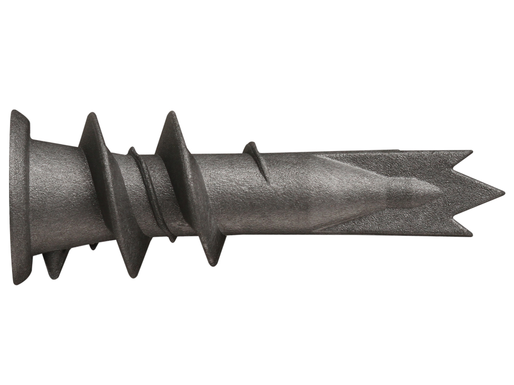 Дюбель PBAМ /серый/, за счет повышенного содержания стекловолокна в нейлоне, может использоваться для всех видов гипсокартонных листов, включая усиленный и реставрационный, в пенобетоне и газобетоне. Заменяет аналогичные металлические дюбели.Благодаря великолепной конструкции с двойной спиралью и материалу анкера - стеклонаполненному нейлону, установка дюбеля выполняется быстро и просто. ПРЕИМУЩЕСТВА- Коническая резьба обеспечивает высокую несущую способность дюбеля;- самоцентрирующийся наконечник с режущими кромками позволяет произвести установку без предварительного сверления;- быстрый монтаж;- установка дюбеля в одной плоскости с поверхностью основания. Монтаж: Просверлите направляющее отверстие, используя в качестве сверла острие дюбеля. Вкрутите дюбель до совмещения с плоскостью основания. Установите прикрепляемый материал и закрутите шуруп.
