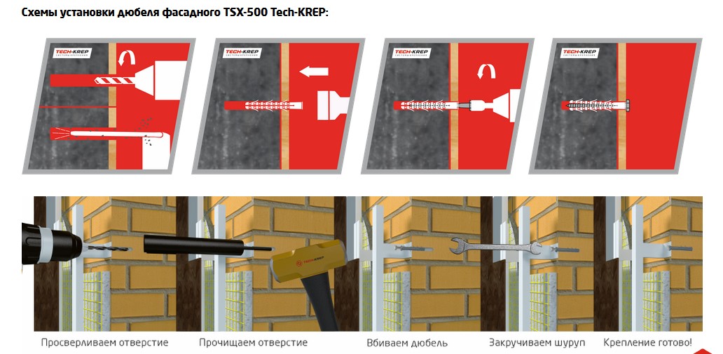 Особенности: дополнительные «УСЫ» позволяют избежать прокручивания дюбеля и создают дополнительный упор. Цилиндрический бортик препятствует возникновению мостика холода между шурупом и закрепляемой контракцией, а так же предотвращает контактную коррозию.