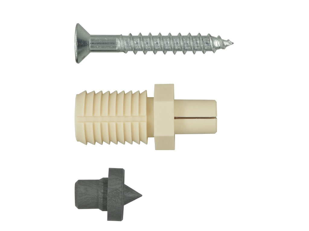 Состав комплекта PLM: распорный нейлоновый дюбель, шуруп оцинкованный ГОСТ 1145-80, разметочный керн. материал дюбеля: нейлон , материал шурупа: нержавеющая сталь , материал керна: стеклонаполненный нейлон Комплект PLM предназначен для установки в стальной пустотелый профиль. Благодаря короткому распорному элементу дюбеля, комплект может использоваться с узким стальным профилем.! Комплекты предназначены для крепления деревянных ступеней и древесных панелей толщиной от 30 мм и больше . ПРЕИМУЩЕСТВА- геометрия соединительной втулки позволяет поглощать вибрации и предотвращает скрип- небольшая распорная зона дюбеля PLM позволяет производить монтаж в узкий металлический профиль- керн облегчает разметку под сверление.