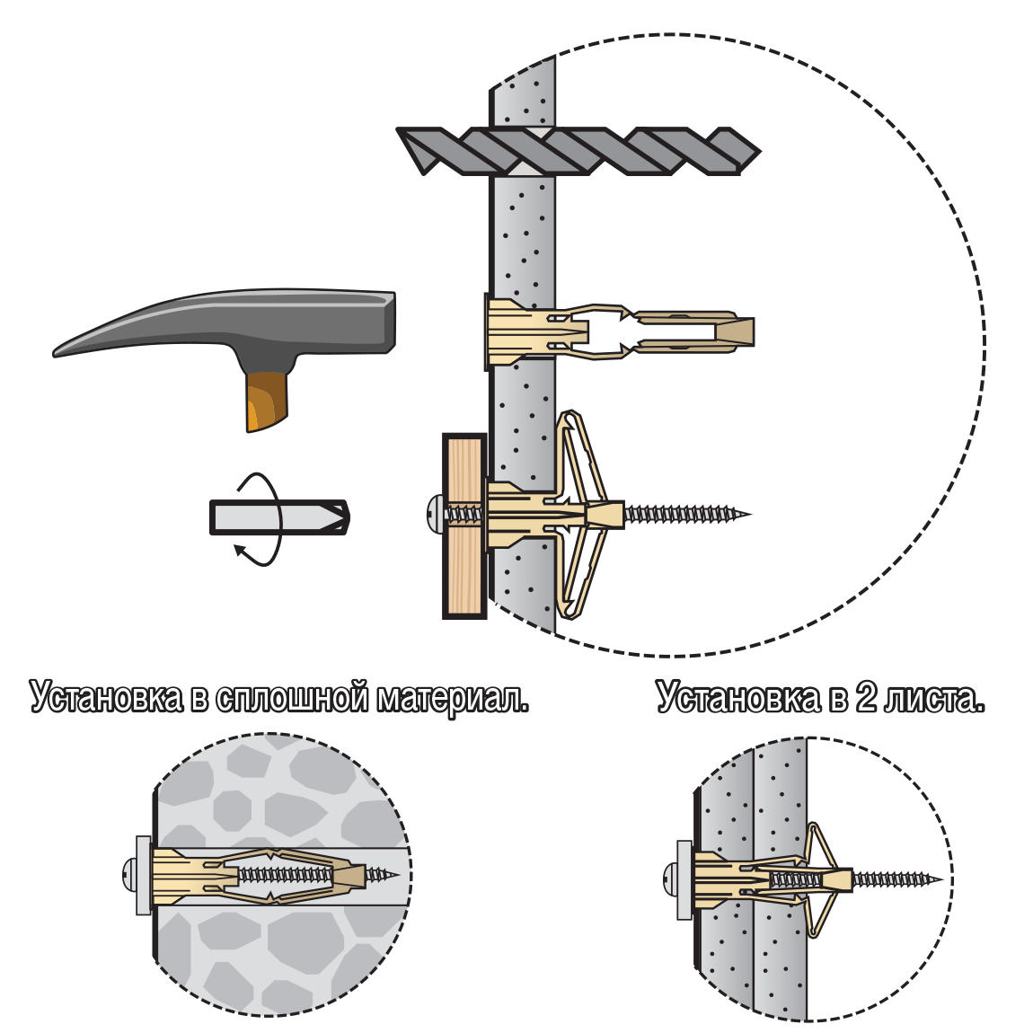 ПРЕИМУЩЕСТВА- Материал шурупа, электрооцинкованная сталь с антифрикционным покрытием, облегчает монтаж;- бортик и ребра обеспечивают надёжную фиксацию в листовых материалах;- конструкция дюбеля позволяет произвести установку в одинарный и двойной гипсокартонные листы толщиной от 12 мм, кирпич, бетон;- геометрия дюбеля препятствует прокручивнию при монтаже;- высокие нагрузочные характеристики.