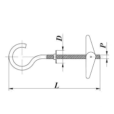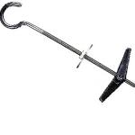 Материалы : Сталь, покрытие - цинк. Складной пружинный дюбель с крючком. Дюбель имеет метрическую резьбу и складные стопорные крылья с пружинным механизмом. В сложенном состоянии крылья проходят сквозь отверстие плиты и раскрываются в пустом пространстве за плитой, обеспечивая надежное крепление. Применение: Крепление легких конструкций к гипсокартонным плитам, древесностружечным плитам, а также к другим пустотелым строительным материалам.