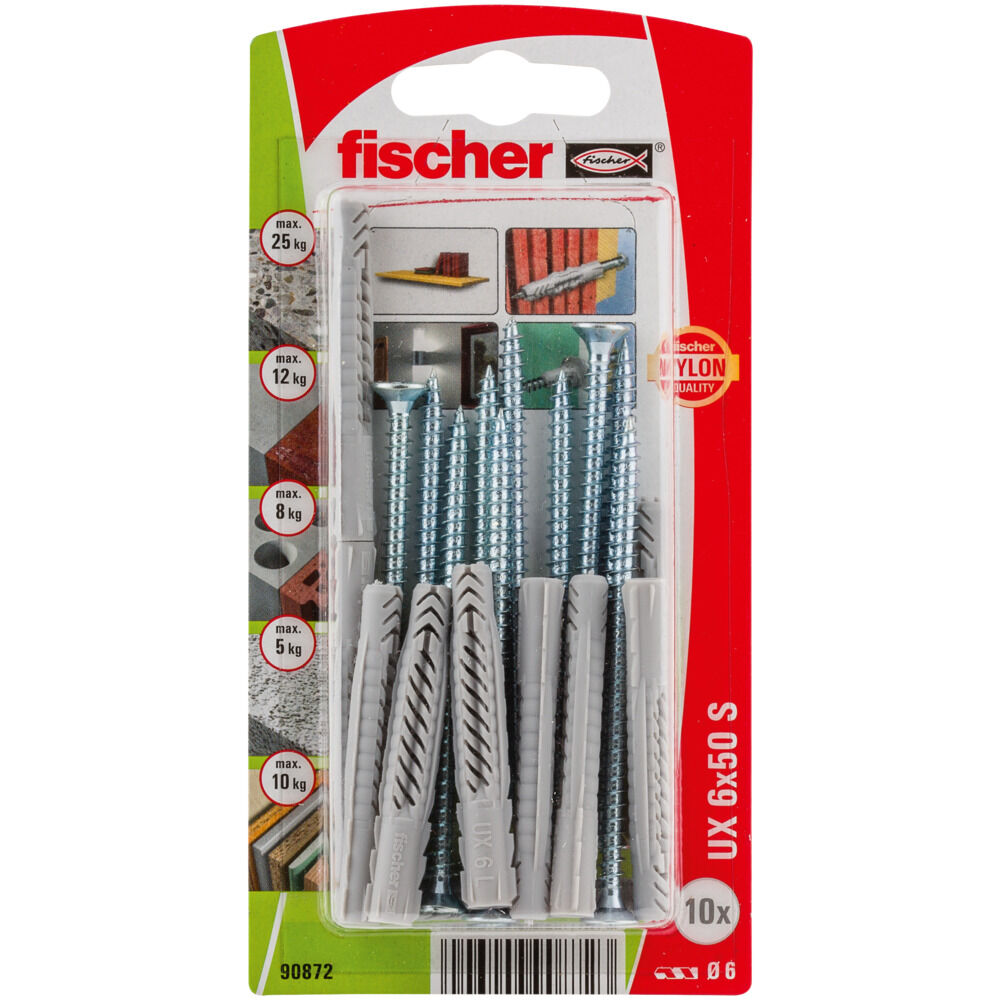 Универсальный дюбель UX из высококачественного нейлона. Универсальный дюбель создает распор в полнотелых строительных материалах и завязывается узлом в пустотелых строительных материалах. Благодаря двум вариантам функционирования UX всегда является правильным выбором - даже при монтаже в неизвестные строительные материалы. Выступающая кромка предохраняет дюбель от проскальзывания в просверленное отверстие. Функционирование Универсальный принцип действия (завязывание узлом или распор) позволяет использовать дюбель в полнотелых, пустотелых и листовых строительных материалах. Дюбель UX особо эффективен в тех случаях, когда тип базового материала не определен. Идущие под углом насечки дюбеля UX обеспечивают оптимальное позиционирование шурупа.
