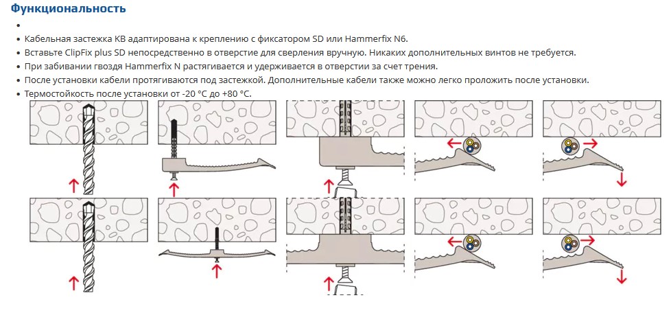 • Кабельная застежка SF plus KB с фиксатором ClipFix позволяет производить монтаж одной рукой, что обеспечивает гибкую и экономичную установку.