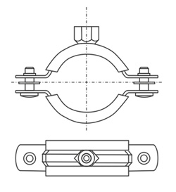 Предназначен для крепления труб. Материал : сталь оцинкованная, резиновая прокладка. Монтаж : трубный хомут крепится к несущей конструкции винтом-шурупом, который вворачивается в гайку на хомуте.