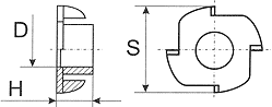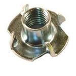 Описание: врезная гайка имеет множество названий, например мебельная, носковая, усовая или гайка крыльчатая. Конструктивно выполнена в виде цилиндра с внутренней резьбой, снизу цилиндра располагается шляпка с широким полем из которого вырезаны четыре усика (шипа). Гайка всегда покрыта белым цинком используется в основном в мебельном производстве. Область применения гайки мебельной: используют в основном в мебельном производстве. Так же хорошо подходит для скрепления деревянных конструкций. Надежно фиксируется в дереве и достаточно хорошо держит деревянные изделия. Способ монтажа гайки din 1624: монтируют в основном на мебельном производстве с помощью установочных станков на сборочной линии. Но если речь идет о ручной установке, то гайку забивают с помощью молотка, в заранее подготовленное отверстие таким образом, что бы усики надежно фиксировались в дереве. После чего можно производить крепление, с другой стороны от стороны установки гайки.