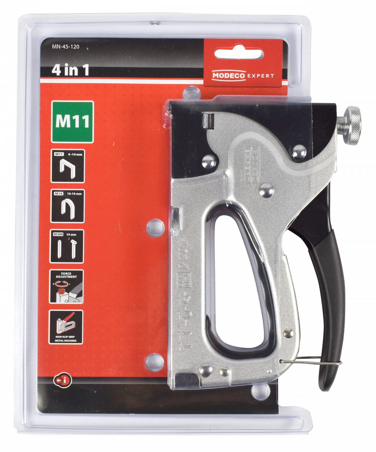 Стальной корпус обеспечивает долгий срок службы инструмента Плавная регулировка силы выбивания позволяет регулировать силу выбивания скоб в зависимости от их длины и твердости материала. Ручка с нескользящей поверхностью обеспечивает безопасное и удобное использование Просмотр содержимого скоб позволяет контролировать количество скоб в кассете, не прерывая работу Широкий диапазон от 4 до 14 мм позволяет комбинировать материалы различной толщины