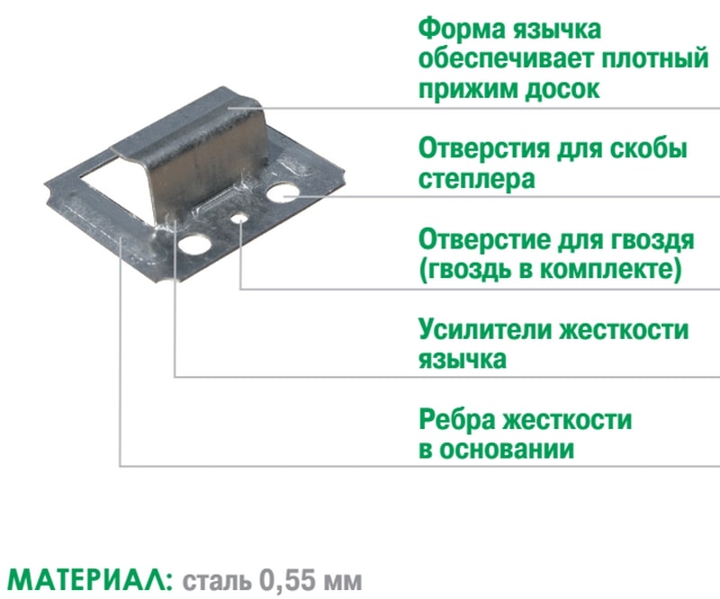 Установка блок-хауса или фальш-бруса с помощью кляймеров является отличной альтернативой другим способам фиксации. При монтаже материал не повреждается, а на работу тратится минимум времени и усилий. Кляймеры производятся из оцинкованного железа, способны выдержать большие нагрузки, имеют длительный срок эксплуатации. Достоинством крепежа является доступная стоимость и полная невидимость после завершения работ. Применение: монтаж блок хауса, монтаж имитации бруса. Доступность применения кляймера достигается способом крепления – «в паз» и к стене – на гвоздь или скобу степлера. Не смотря на очевидность и легкость «монтажа на кляймер» этот способ крепления также как и большинство других требует учета начальной влажности древесины на момент монтажа и условий ее дальнейшей эксплуатации. Особенности использования кляймеров На российском строительном рынке существует большое количество крепежей для вагонки и имитации бруса, но большинство потребителей отдают предпочтение именно кляймерам. И вот почему: · для любого типа вагонки или другого пиломатериала можно подобрать кляймер своего размера; · простота в применении позволяет использовать этот крепеж даже новичку; · благодаря особенностям данного вида крепежа обшивка из вагонки, имитации бруса или других материалов прочно удерживается на стене; · цена на кляймеры ниже, чем на другие аналогичные крепления; · кляймеры производятся из стали оцинкованной в заводских условиях, что обеспечивает их длительный срок службы; · при креплении кляймера никогда не возникнет сколов, в отличии от саморезов или гвоздей. Расчет необходимого количества кляймеров довольно прост, в среднем это 15-20 штук на квадратный метр обшивки. Наши специалисты рады помочь Вам при подсчете необходимого количества кляймеров. Но вы также можете и сами рассчитать его. Необходимо разделить длину вагонки (имитации бруса) на расстояние между брусками обрешетки и прибавить к этому числу один. Таким образом, мы узнаем количество точек крепления одной доски. Полученное значение необходимо умножить на количество досок в упаковке, а так же количество упаковок. В результате нехитрых подсчетов Вы получите нужное количество крепежей. Наш кляймер – обладает конструктивными особенностями, которые указывают на то, что это лучшее предложение по надежности.