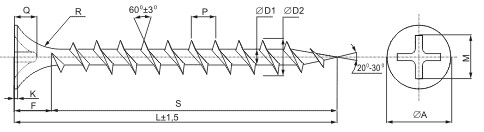 Предназначен для крепления гипсоволоконных листов к деревянной обрешетке. Потайная головка, крестообразный шлиц Philips № 2, острый наконечник с крупным шагом, оксидированные. Материал: сталь 1022. Твердость сердцевины 289 - 449 HV, твердость поверхностного слоя 560 - 653 HV. Монтаж: закрутить саморез при помощи отвертки или дрели с крестообразной насадкой Phillips №2. Головка потайная, позволяет сделать довольно плотный прижим гипсокартонных плит к каркасу. При этом с помощью специального фосфатного покрытия создается отличная адгезия лакокрасочных покрытий, что делает крепеж почти незаметным.