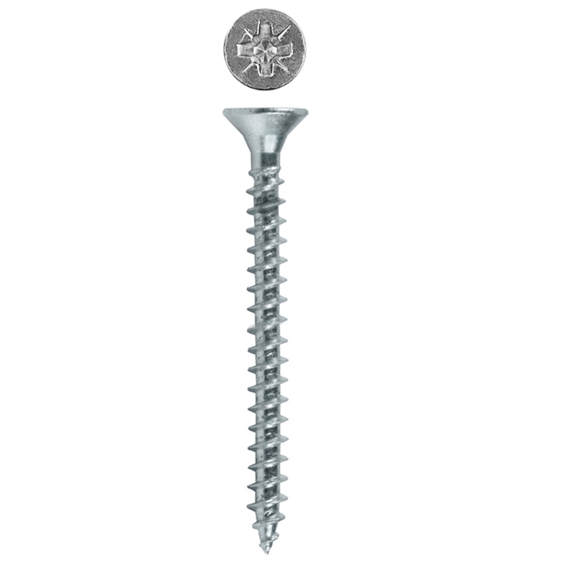 Универсальные стальные оцинкованные (жёлтый/белый цвет) саморезы для крепления различных конструкций к дереву, фанере, ДСП. При использовании дюбеля применяется к плотным материалам.